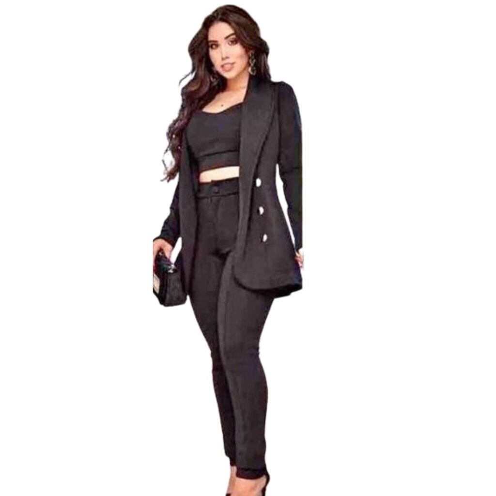 Descubre la fusión perfecta entre elegancia y confort con nuestro impresionante conjunto de bengalina elastizada. Este conjunto incluye un pantalón sin cinto, un top y blazer, diseñados con atención al detalle y confeccionados con tejido de bengalina de primera calidad que ofrece un ajuste cómodo y favorecedor. El pantalón presenta un diseño clásico con un cinturón que añade un toque de sofisticación, mientras que el blazer agrega un aire de elegancia y estilo a cualquier atuendo. Ya sea que lo combines para una reunión de negocios importante o para una salida informal con amigos, este conjunto te garantiza lucir impecable en cualquier ocasión. Además, la elasticidad del tejido asegura una total libertad de movimiento sin comprometer el estilo. No te conformes con menos: elige nuestro conjunto de bengalina elastizada y haz una declaración de moda dondequiera que vayas. ¡Consíguelo ahora y haz que cada día sea una oportunidad para brillar